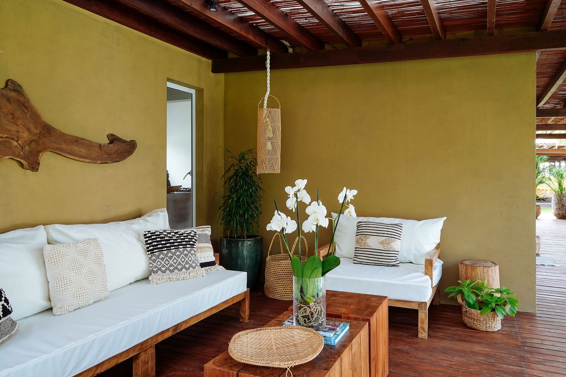 Decorado em estilo rústico-chique, combina materiais e texturas naturais.
